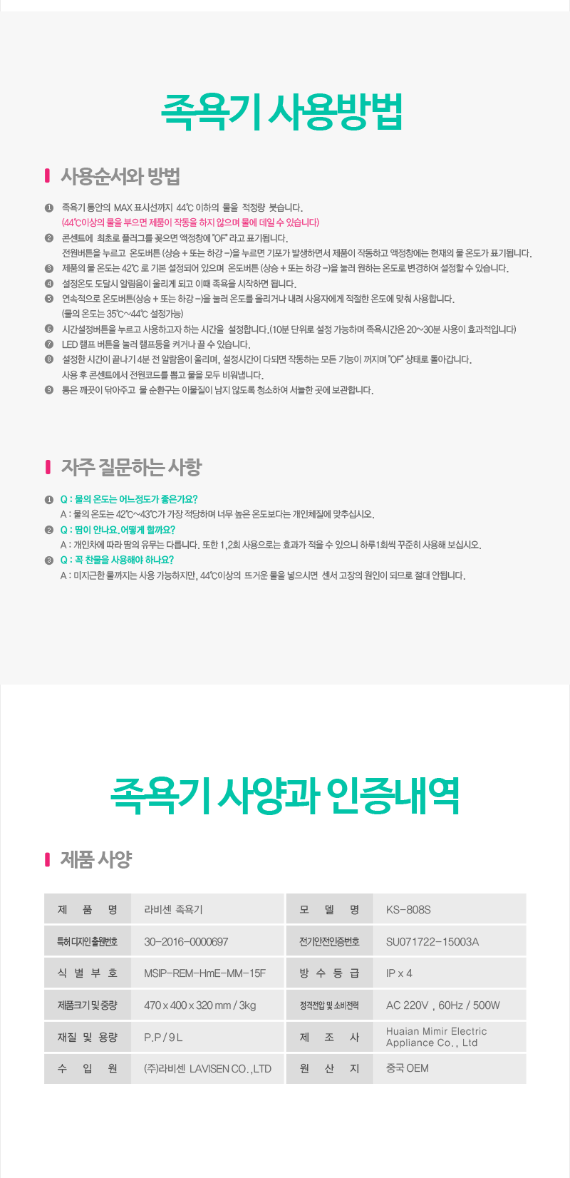 HOME > 건강관리/안마/좌훈/족욕 > 파라핀베쓰/파라핀/족욕기 > 라비센 공기방울 족욕기 KS-808S